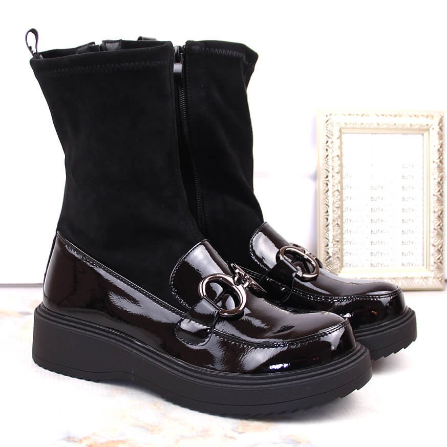 Les bottes élégantes, à la mode et confortables-sabatina DM23-18N sont une proposition pour les femmes qui apprécient l'apparence élégante et le confort d'utilisation. Le noir classique dans une version vernie brillante met parfaitement met en valeur chaque stylisation, et une chaîne supplémentaire donne au caractère des chaussures.