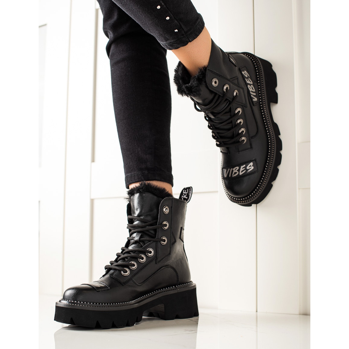 Les bottes Vibes sont un choix parfait pour la saison automne/hiver. Leur look décontracté et rock s'accordera avec de nombreux styles, aussi bien en jean qu'en jupe. Joliment décorés de zircons et de fourrure, ils attireront l'attention et souligneront le style unique de chaque femme.