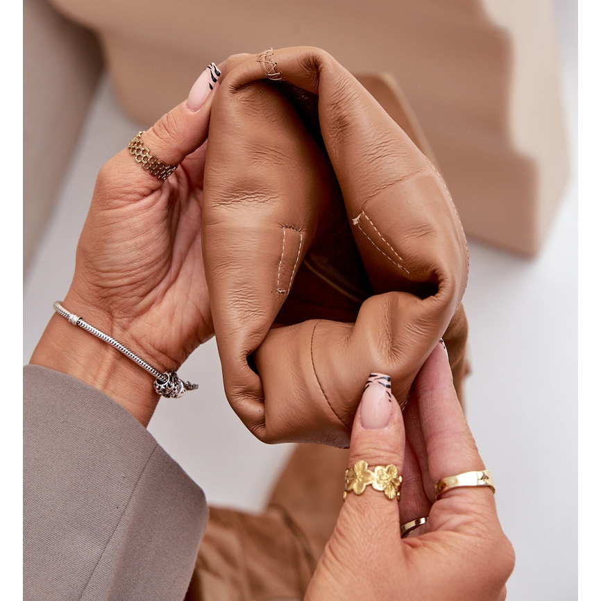 La tige, qui atteint le genou, donne aux Cosaques un caractère sophistiqué, et la structure de glissement avec une fixation de fermeture éclair supplémentaire facilite la mise en place quotidienne et assure un ajustement parfait à la jambe. Le nez arrondi et une semelle carrée ajoutent la modernité aux chaussures, ce qui en fait un élément universel de chaque stylisation.