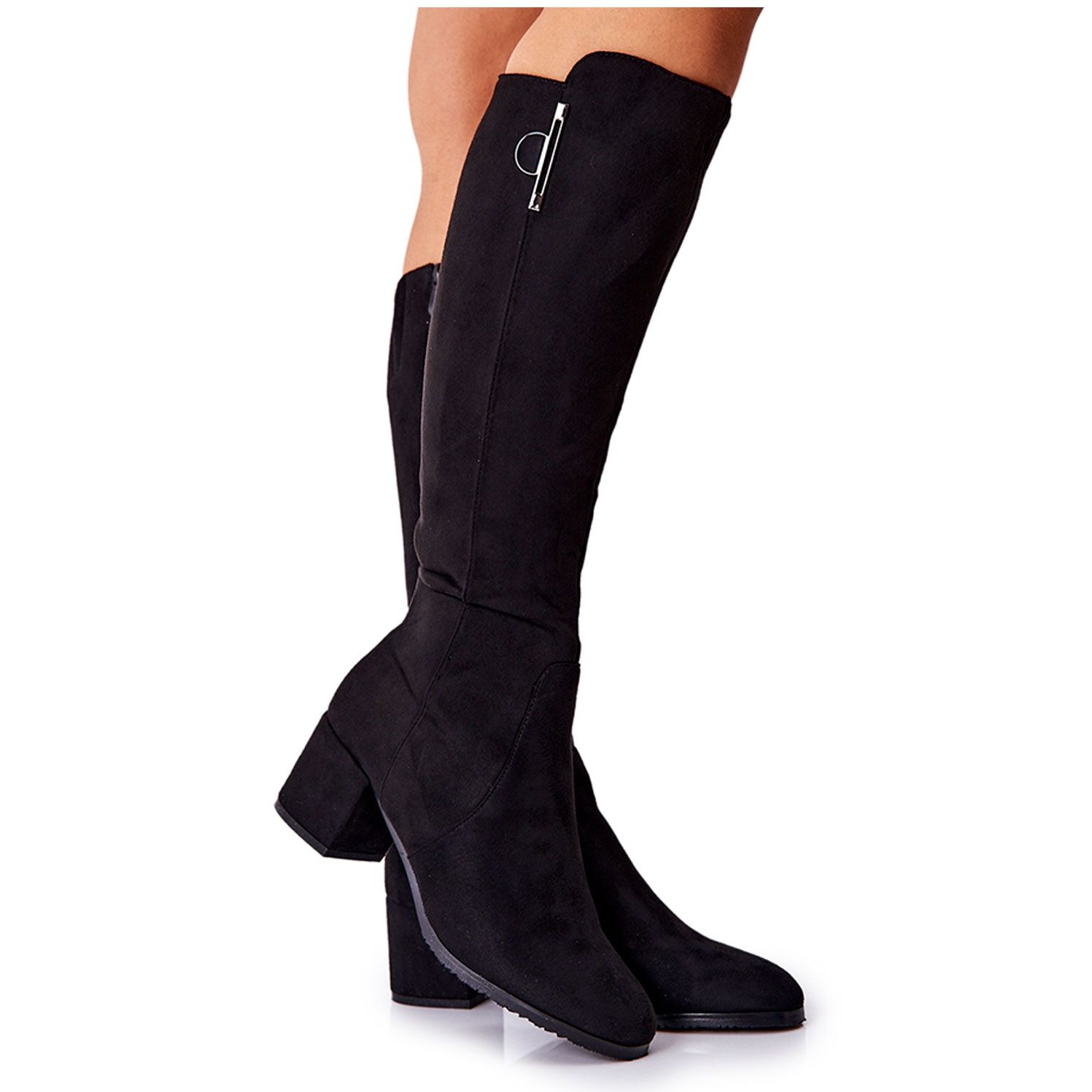 Les bottes se caractérisent par un talon délicat, qui non seulement ajoute quelques centimètres de hauteur, mais met également joliment en valeur la silhouette. Grâce à la fermeture éclair cousue sur le côté, l'enfilage des chaussures devient rapide et pratique, ce que vous apprécierez au quotidien. La tige, arrivant jusqu'au genou, est délicatement décorée d'un emblème, qui leur confère un charme subtil.