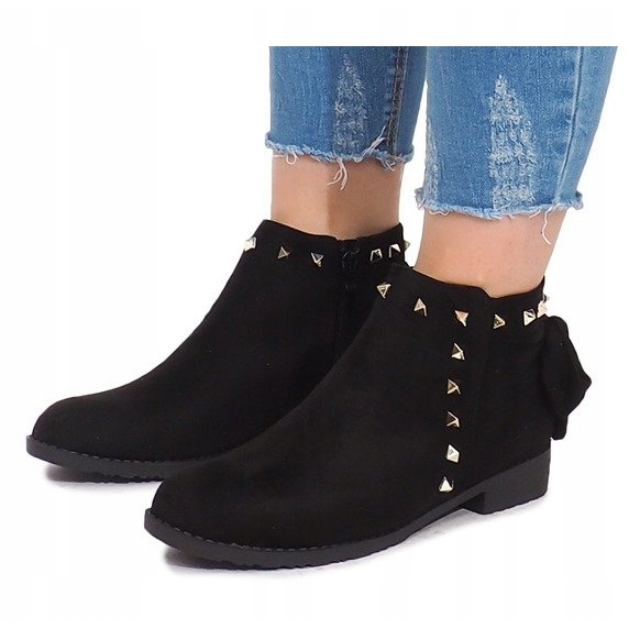 Les bottes sont fabriquées en daim écologique de haute qualité, ce qui garantit durabilité et confort. Grâce à une fermeture éclair pratique, les mettre et les enlever est extrêmement simple. De plus, l'arrière des chaussures est orné d'un charmant nœud noir, qui leur confère un caractère unique, et de subtils clous soulignent en douceur leur style moderne.