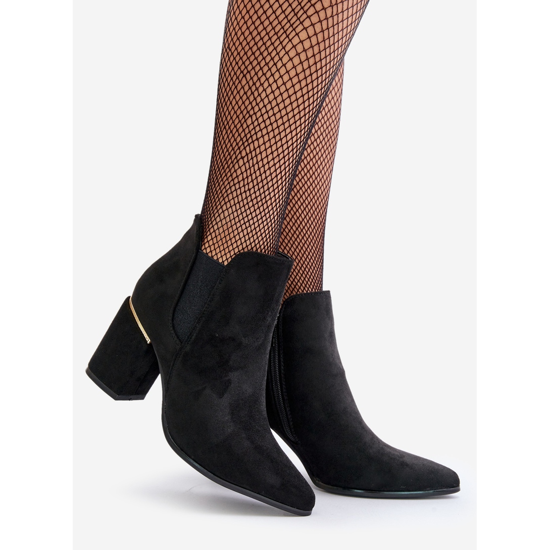 Détails: Bottes en daim écologique sur talon haut isolé noir Daivine