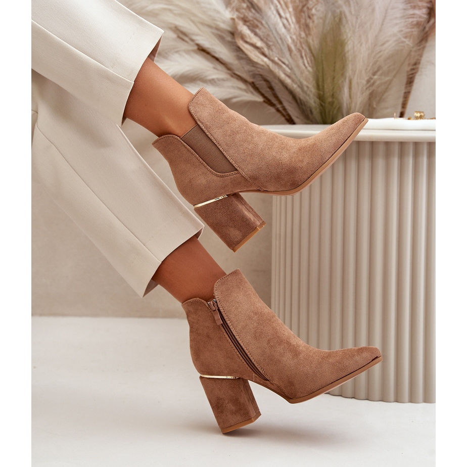 Détails: Bottes en daim écologique sur talon haut isolées marron Daivine brun