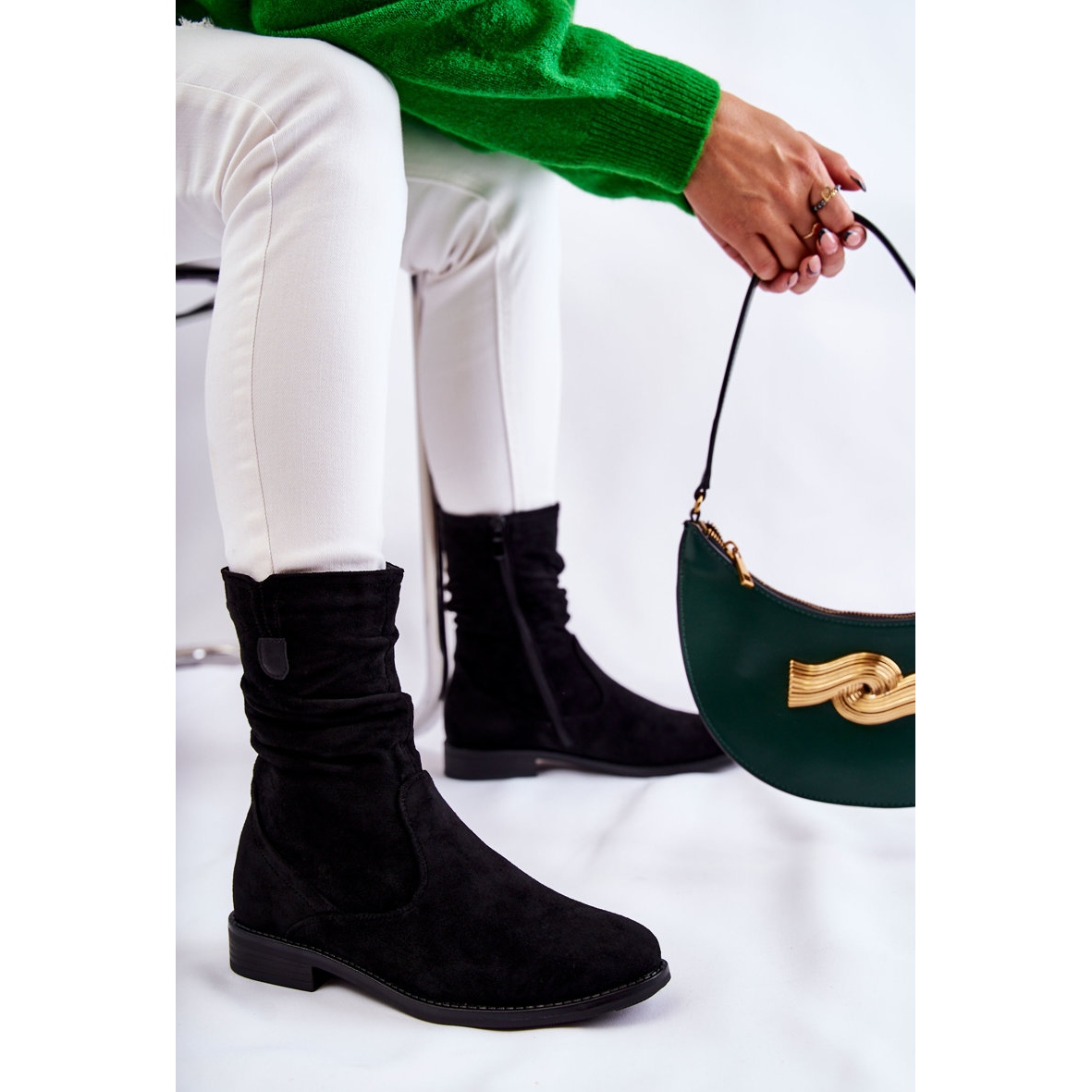- Modèle: Bottes en daim froissé pour femmes Noir Joanne