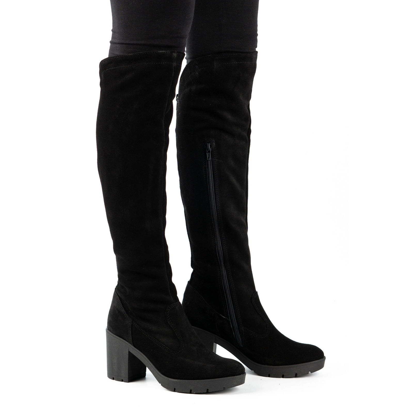 Des bottes Margaret élégantes et pratiques de la marque Olivier combinent chaque jour une coupe intemporelle avec réconfort. Fabriqué en Pologne à partir de cuir en daim naturel, avec une coupe féminine simple atteignant le genou (environ 52 cm), ils seront un excellent choix pour l'automne et l'hiver.