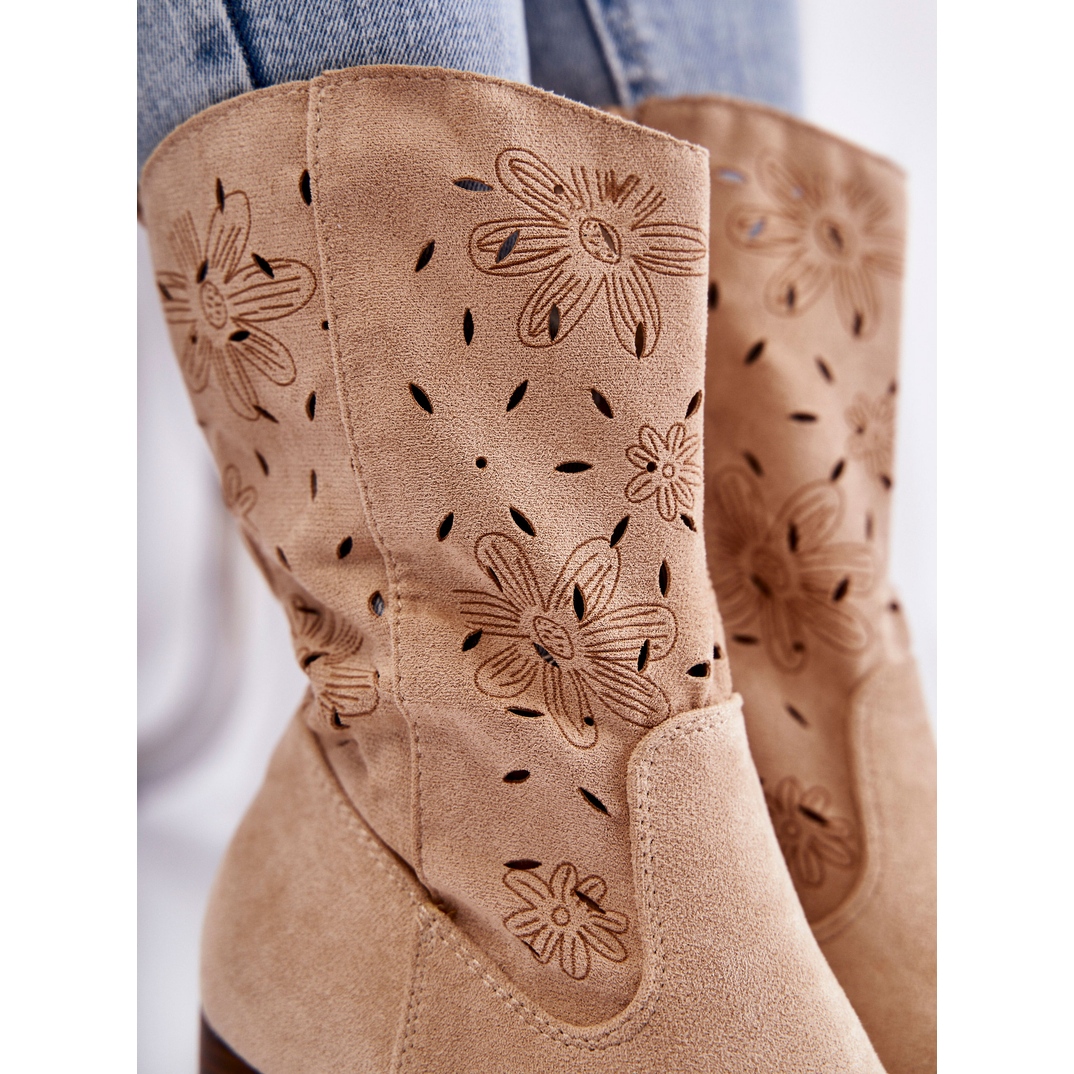 Nous aimerions vous présenter des bottes de cowboy en daim beige pour femmes uniques avec des fleurs par FB1. Ces bottines élégantes combinent un design classique avec des accents modernes, ce qui en fait le choix parfait pour les saisons de transition.