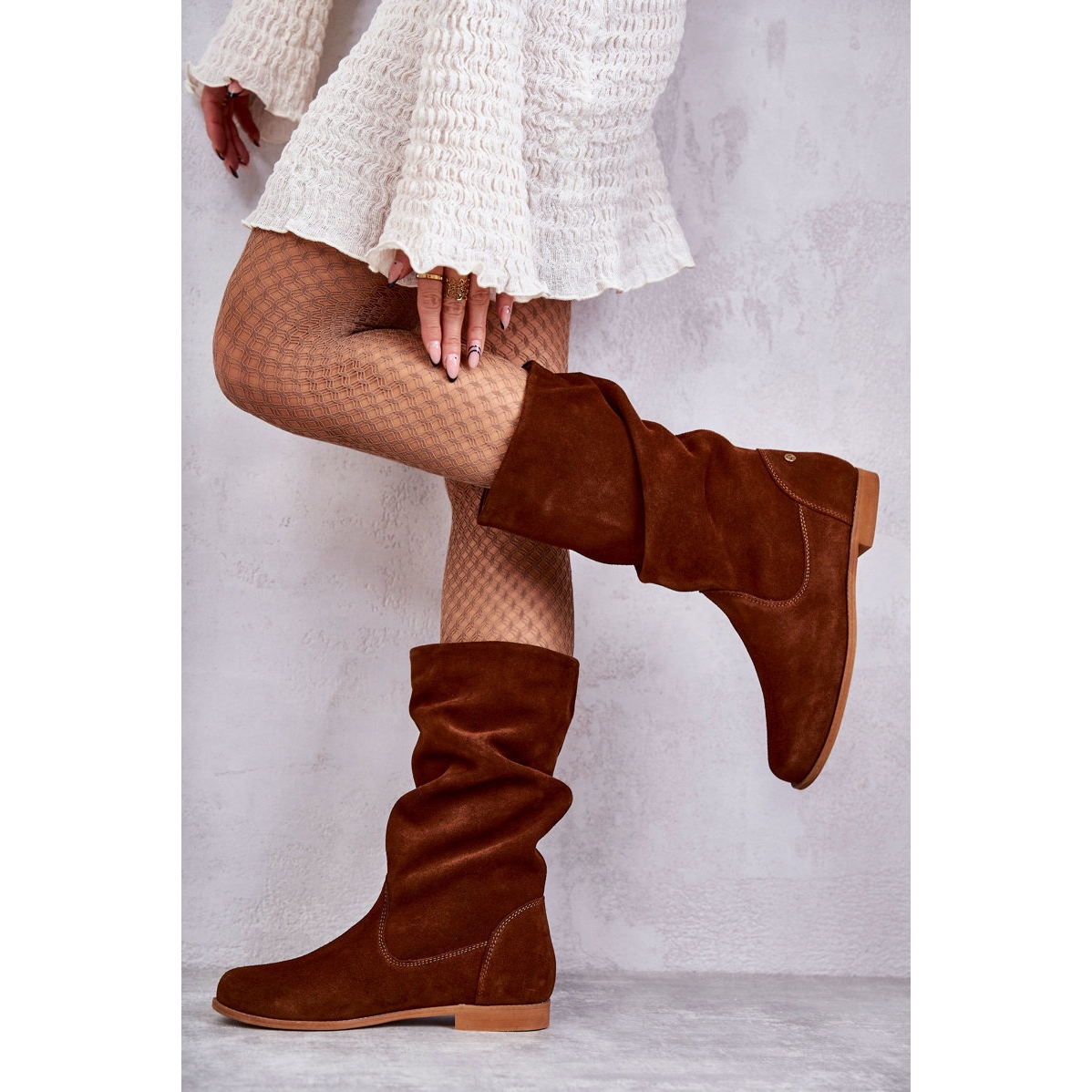 Les bottes complèteront parfaitement une variété de styles, du plus décontracté au plus élégant. Leur talon plat de 2 cm garantit un confort même pendant les longues journées. La hauteur supérieure de 26,5 cm signifie qu'ils arrivent à mi-mollet, ce qui est non seulement pratique, mais aussi élégant.