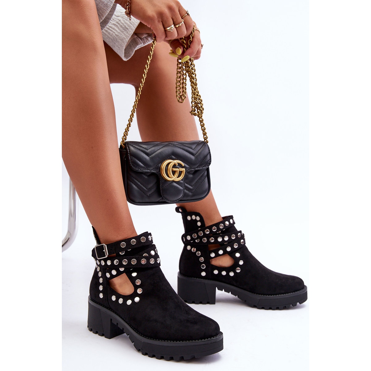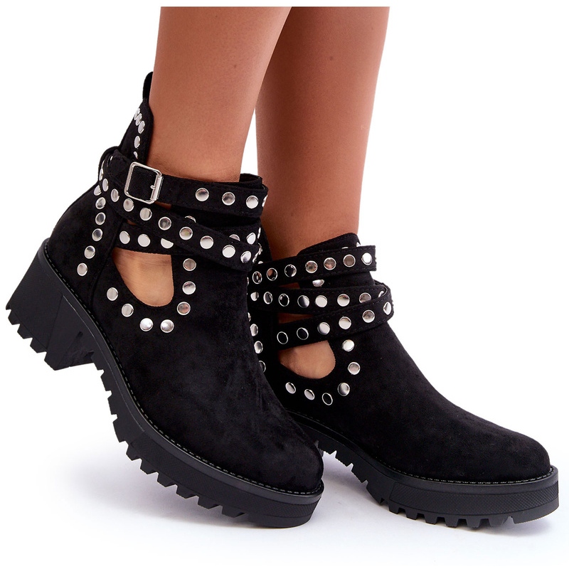 Détails: Bottes en daim pour femmes avec clous décoratifs Black Bella le noir