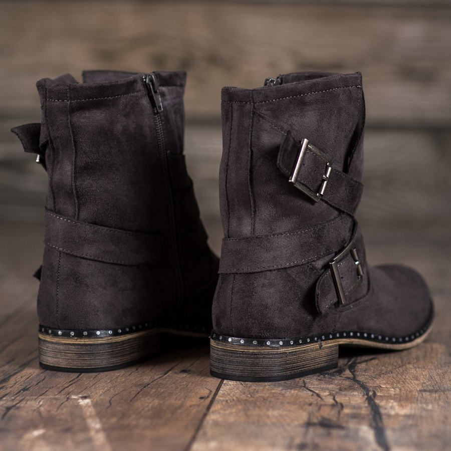 Ce sont d'extraordinaires bottines pour femme Corina qui allient élégance et confort. Fabriquées en daim de haute qualité d'une belle couleur marron foncé, ces chaussures s'intègrent parfaitement dans les tendances actuelles. La tige haute, qui arrive au-dessus de la cheville, est ornée de brides avec boucles sur les côtés, ce qui leur confère un caractère unique.