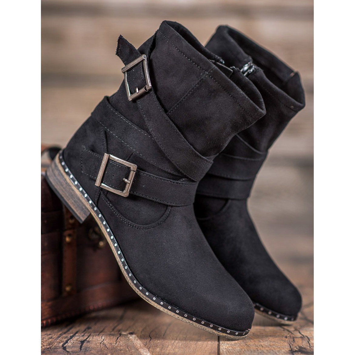 Grâce à l'utilisation de sangles réglables, les bottes s'adaptent parfaitement à la jambe, ce qui élimine le risque que le pied glisse hors des chaussures. La semelle intérieure en tissu doux augmente encore le confort de marche, vous permettant de bouger librement tout au long de la journée. Un talon stable et renforcé et un talon plat de 3 cm de haut rendent ces bottes non seulement à la mode, mais aussi extrêmement confortables.