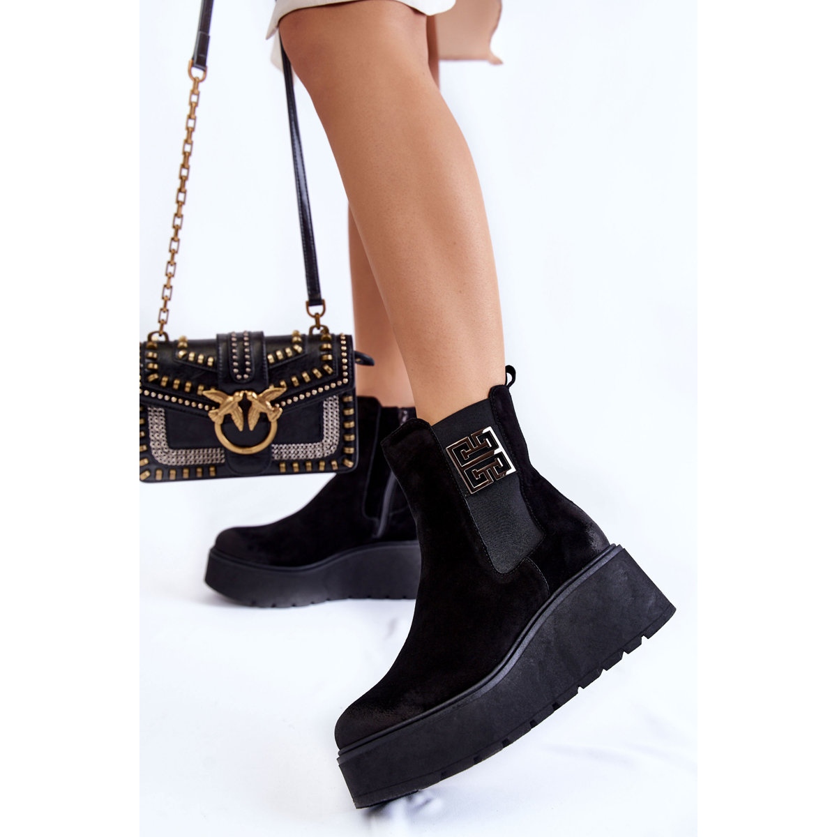 Nous vous présentons des bottines en daim sur une plateforme massive en noir de la célèbre marque Savira. Ces élégantes bottines pour femmes sont le choix parfait pour la prochaine saison automne/hiver, alliant design tendance et confort de port.