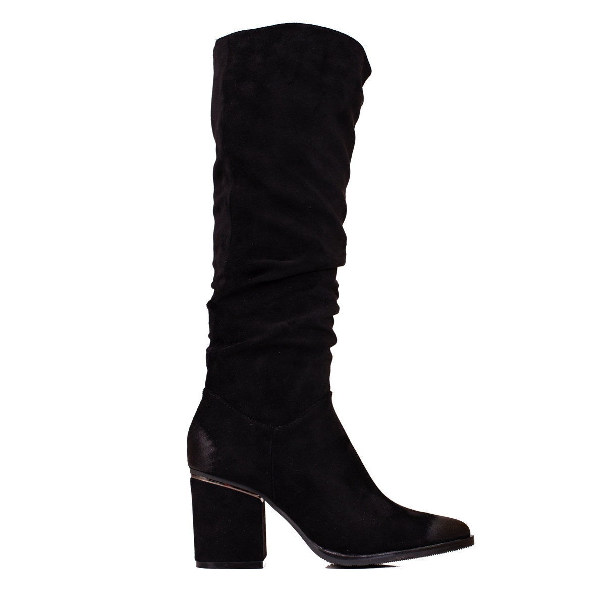 Détails: W. Potocki Bottes en daim pour femmes sur le poteau Potocki avec une tige à volants noir