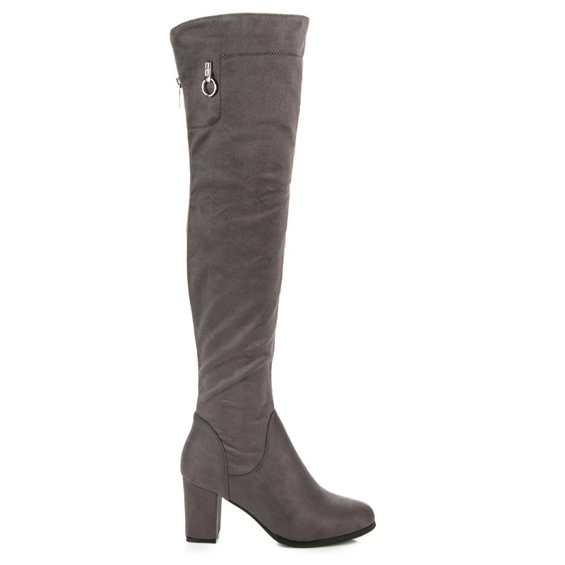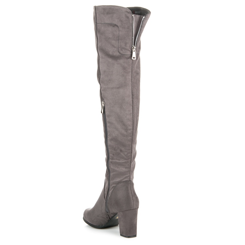 La tige au-dessus du genou ajoute non seulement du style, mais offre également une isolation adéquate, ce qui en fait un choix idéal pour les journées les plus froides. Le bout rond garantit un confort de port, et le solide talon bloc de 8 cm ajoute de la finesse à la silhouette sans alourdir les pieds.
