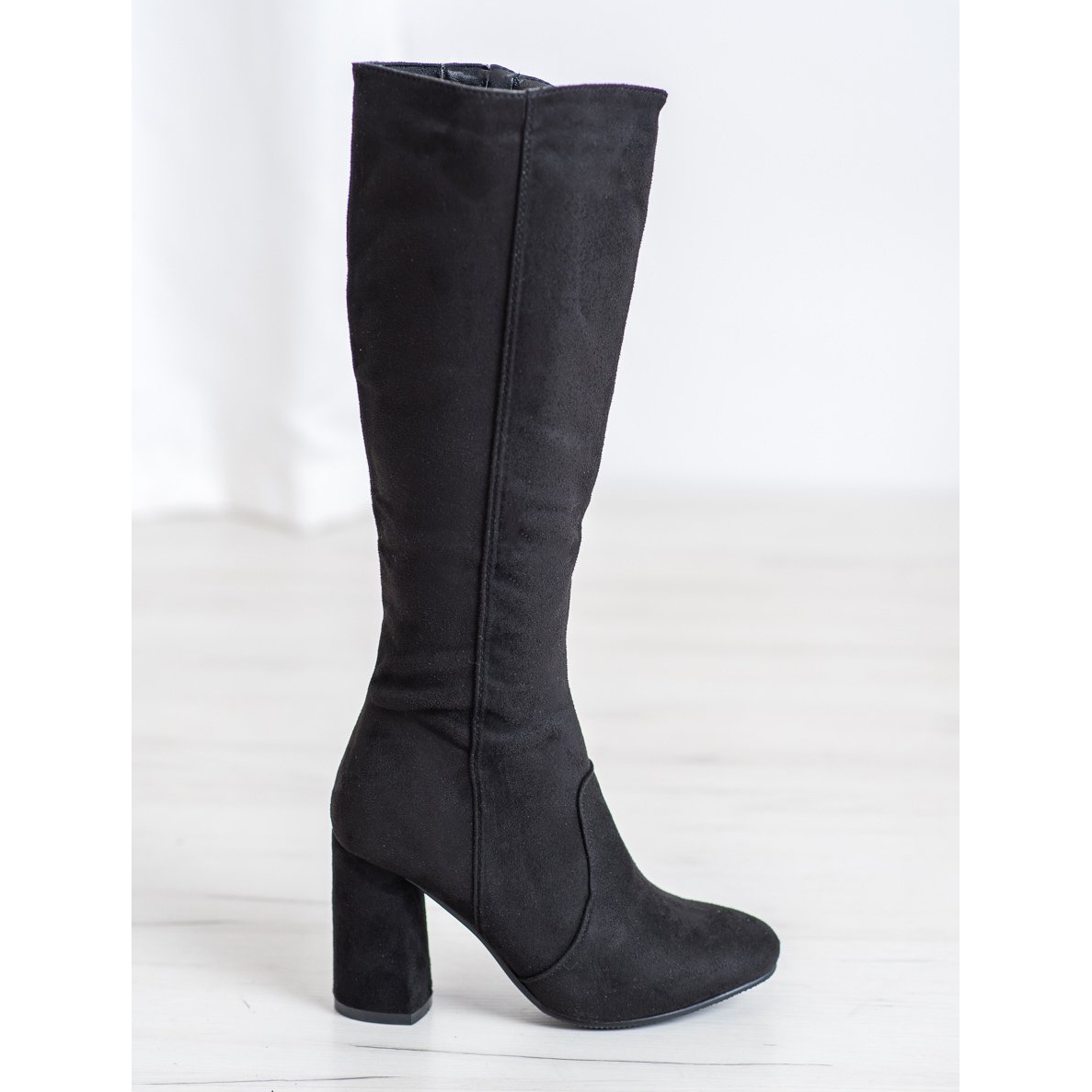 Nous proposons d'élégantes bottes à talons hauts Seastar, qui constituent un choix parfait pour toute femme à la mode. Fabriqués en daim écologique d'une couleur noire classique, ils deviendront un élément universel de votre garde-robe.