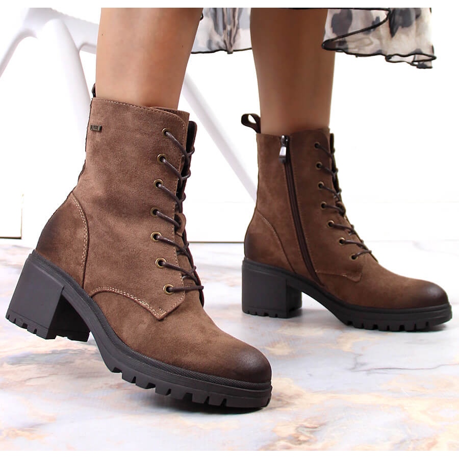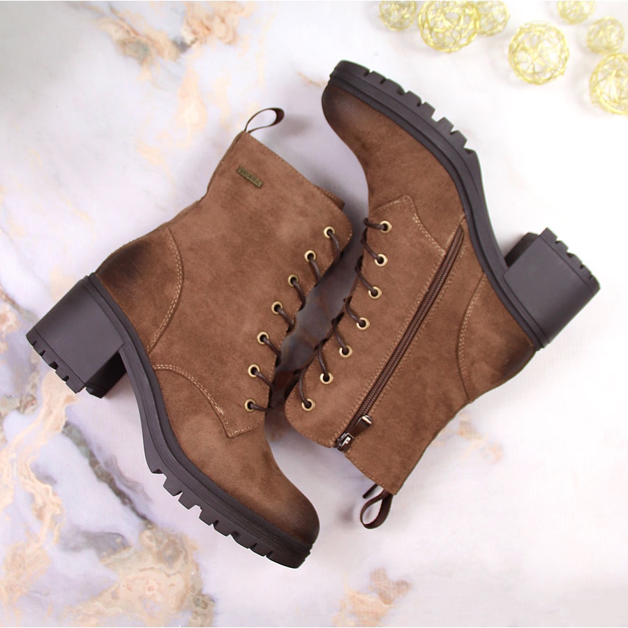 L'intérieur des bottes est doublé d'un matériau de couverture, qui assure chaleur et confort lors de l'utilisation. Un poteau haut d'une hauteur de 6,5 cm ajoute de l'élégance et l'épaisseur de la semelle de 2 cm rend chaque marche stable et confiante. Les bottes ont une fermeture éclair et un laçage supplémentaire, ce qui permet un enfilage et un ajustement faciles au pied.