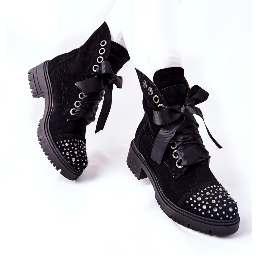 Les bottines se distinguent par leur design original, grâce au galon en ruban, qui permet un ajustement parfait au pied. De plus, le devant des chaussures est décoré de subtils zircons, ce qui leur donne un caractère unique et les rend parfaites pour les styles décontractés et plus élégants.