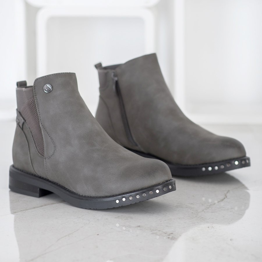 Nous vous présentons des bottines grises élégantes et stylées du fabricant Goodin, qui s'intègrent parfaitement dans les tendances de l'automne et de l'hiver. Ces bottines pour femme, confectionnées en cuir écologique de haute qualité, allient design moderne et confort de port.