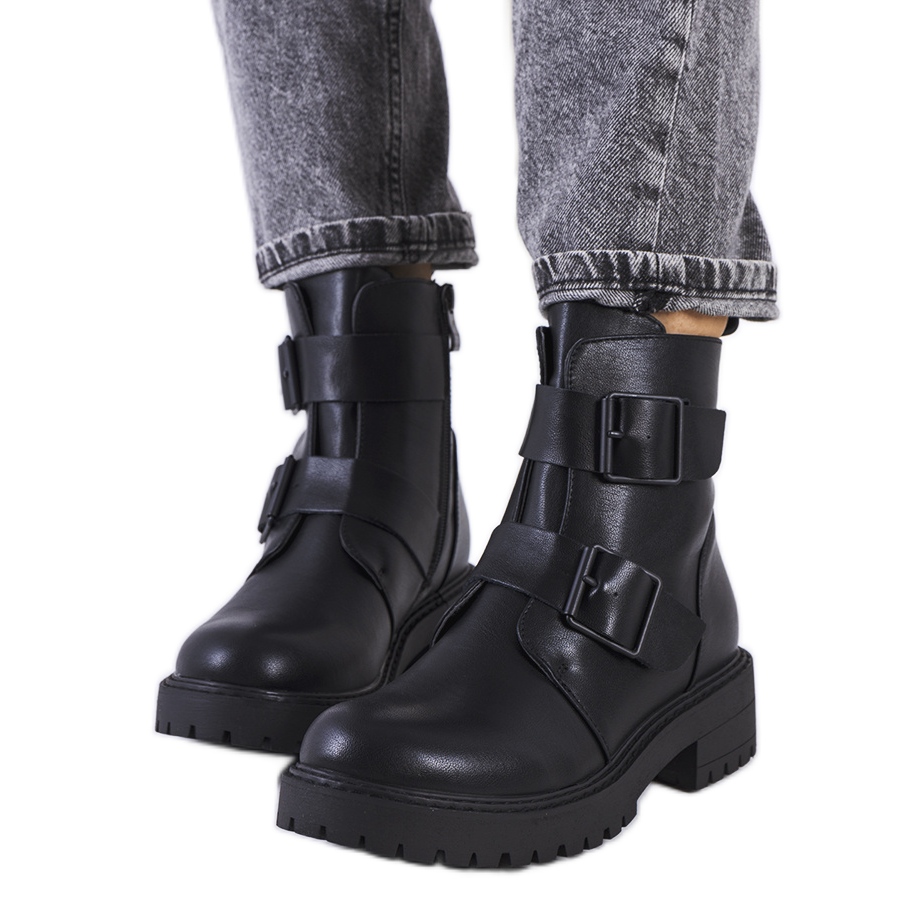 Bottes de lebost noires - élégant, confortable et prêt pour des jours plus frais. Fabriqué en écot, réglé sur un talon bas de 4 cm avec un protecteur, avec une baisse subtile de petits rivets, ce qui ajoute le caractère rocheux. La partie supérieure atteignant la cheville (environ 18 cm) avec la boucle à l'arrière et les coutures décoratives met l'accent sur la finition designer. Deux rayures avec boucles et un nez rond forment un look à la mode, et la fixation de la fermeture éclair à l'intérieur le rend plus facile à mettre - en plus, le laçage vous permet de faire correspondre la coupe à la jambe. L'intérieur isolé avec une couverture de chaussures offre un confort thermique en automne et en hiver.