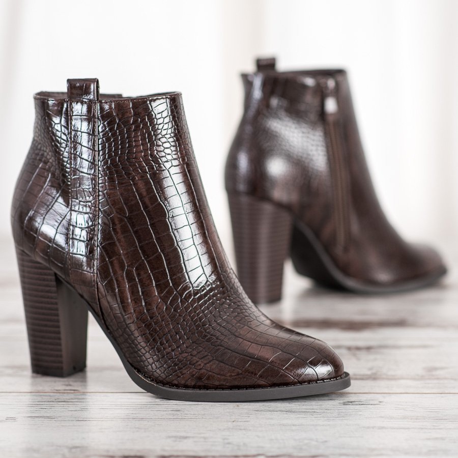 Fabriqués en cuir écologique de haute qualité, disponibles dans une couleur marron tendance avec un motif animalier original, ils seront un complément parfait à différents styles. Le bout rond et le talon intégré renforcé garantissent un confort de port, et l'isolation rend ces bottes parfaites pour les journées les plus froides de la saison automne/hiver.