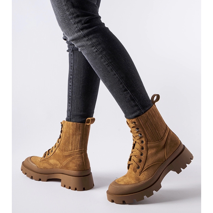 Les bottines sont parfaites aussi bien pour un usage quotidien que pour divers types d'occasions. La teinte marron unique des chaussures, appelée par le fabricant Camel, leur permet d'être librement combinées avec d'autres couleurs.