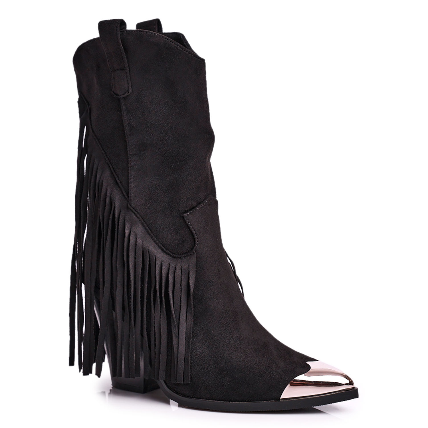 Détails: Bottes Femme À Franges En Daim Noir Bottes De Cowboy Jessica argent