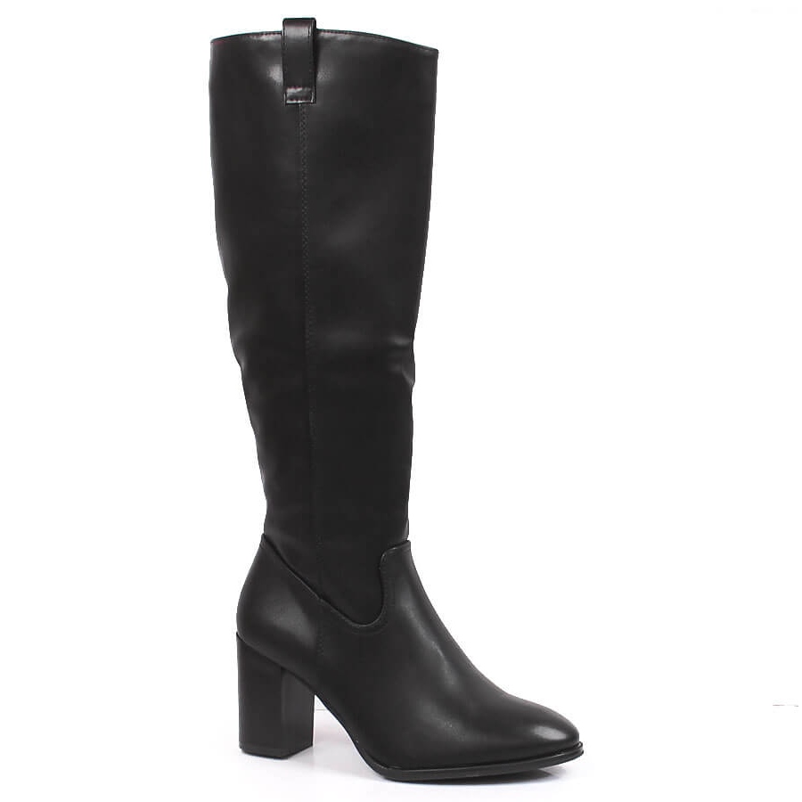 Les bottes ont une coupe classique arrivant jusqu'au genou, avec un élégant talon de 8,5 cm, qui ajoute une silhouette élancée et un caractère unique. Le bloc de talon assure la stabilité, vous permettant de bouger librement tout au long de la journée. Le nez rond et la fermeture éclair sur le côté sont des détails qui allient fonctionnalité et style tendance.
