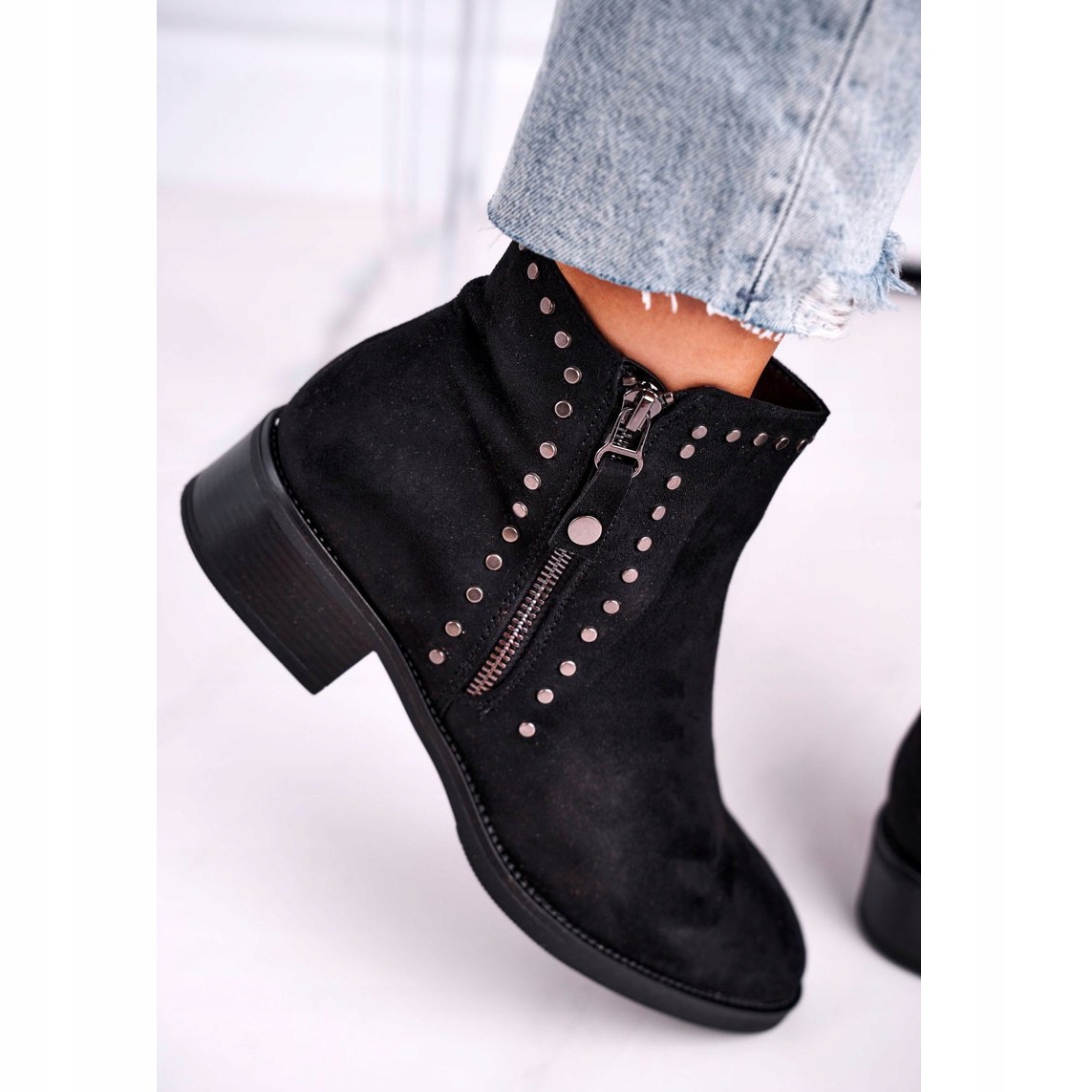 L'intérieur des bottes a été soigneusement isolé avec un couvre-chaussure agréable au toucher, qui garantit chaleur et confort même les jours les plus froids. La tige en daim écologique ornée de subtils rivets argentés confère aux chaussures un caractère unique et original, ce qui en fait un complément parfait à tout style.