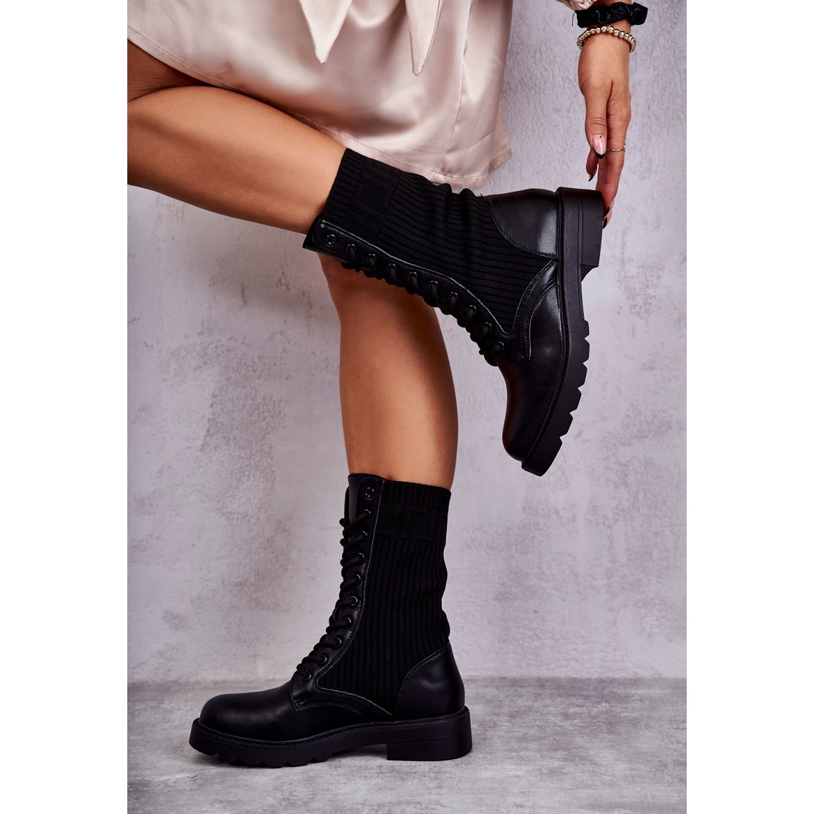 - Modèle: Bottines avec chaussette sur talon plat
