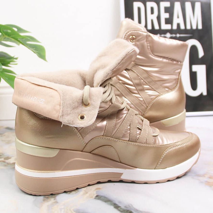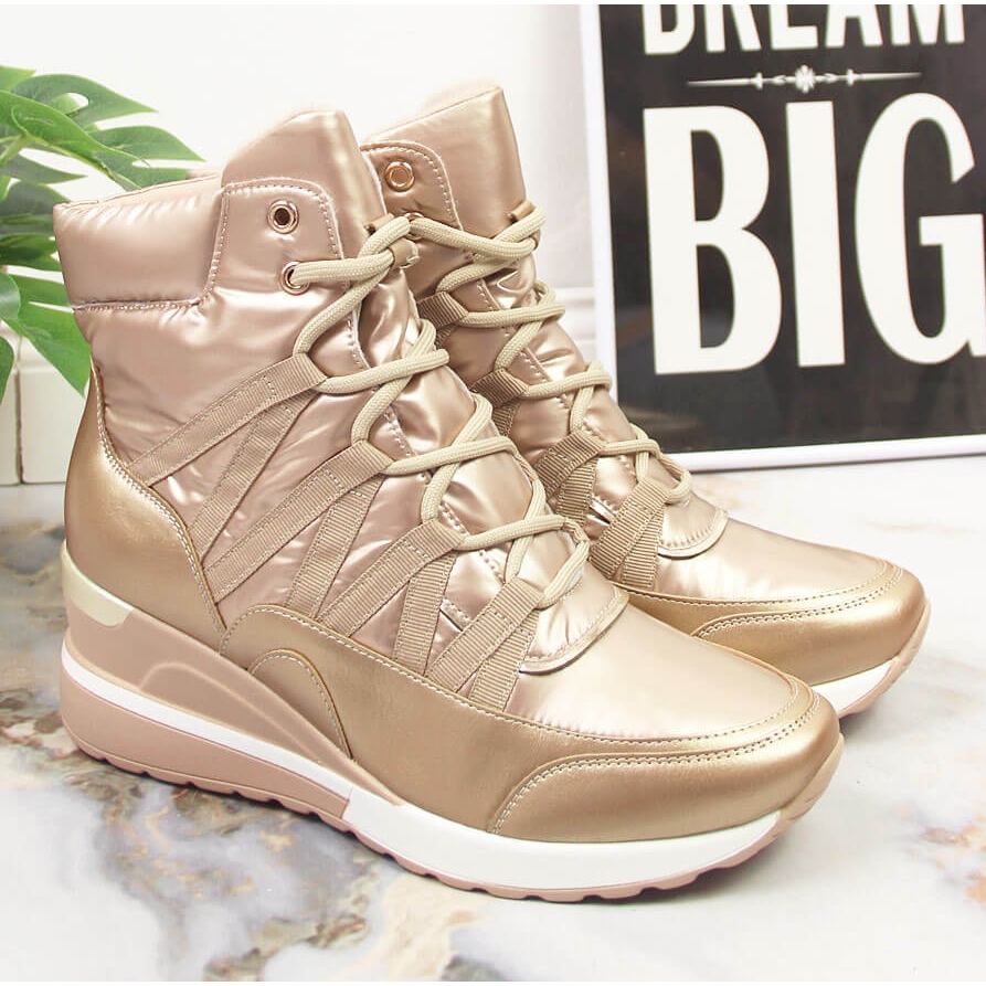Nous vous présentons les baskets compensées pour femmes dans une élégante teinte dorée de la célèbre marque POTOCKI. Ces chaussures élégantes sont la combinaison parfaite de confort et de design à la mode qui fonctionneront bien en différentes saisons, aussi bien en automne qu'en hiver.