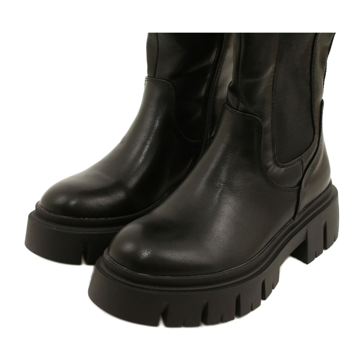 Des bottes élégantes, chaudes et confortables-Evento 22KZ35-5089 sont une proposition idéale pour les journées d'automne et d'hiver fraîches. Le genou classique coupé dans une couleur noire universelle se mélange bien avec le pantalon et avec une robe ou une jupe, en ajoutant du style et du caractère féminin.
