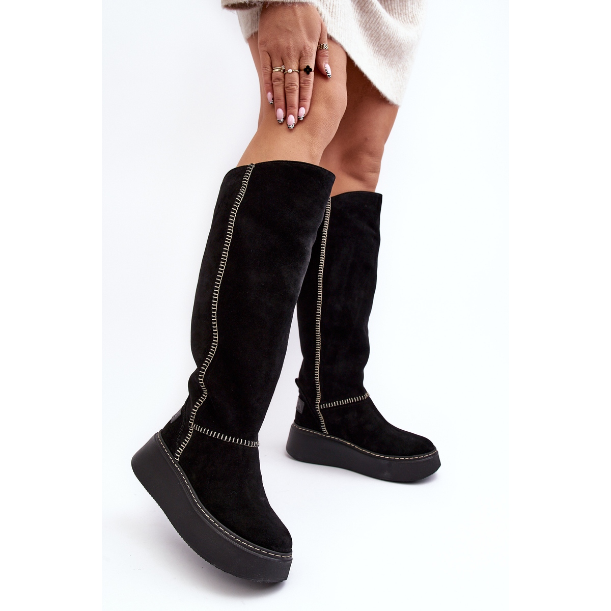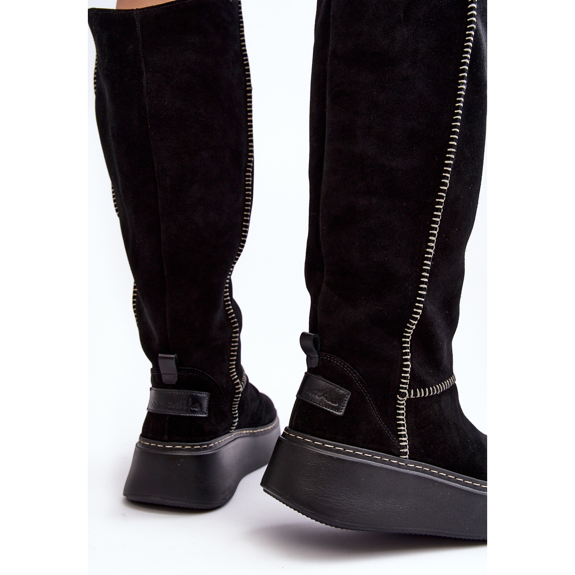 Maciejka Bottes Femme En Daim Sur Plateforme Massive Maciejka 06312-01 Noir le noir
