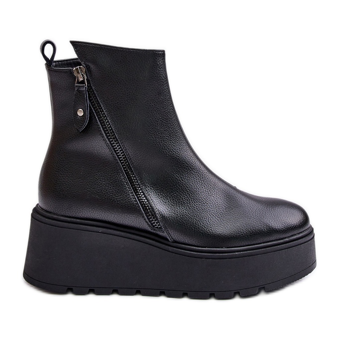 Détails: Bottes Femme Isolées Sur Compensée Et Plateforme, Cuir Naturel, Noir Vinceza 58340 le noir