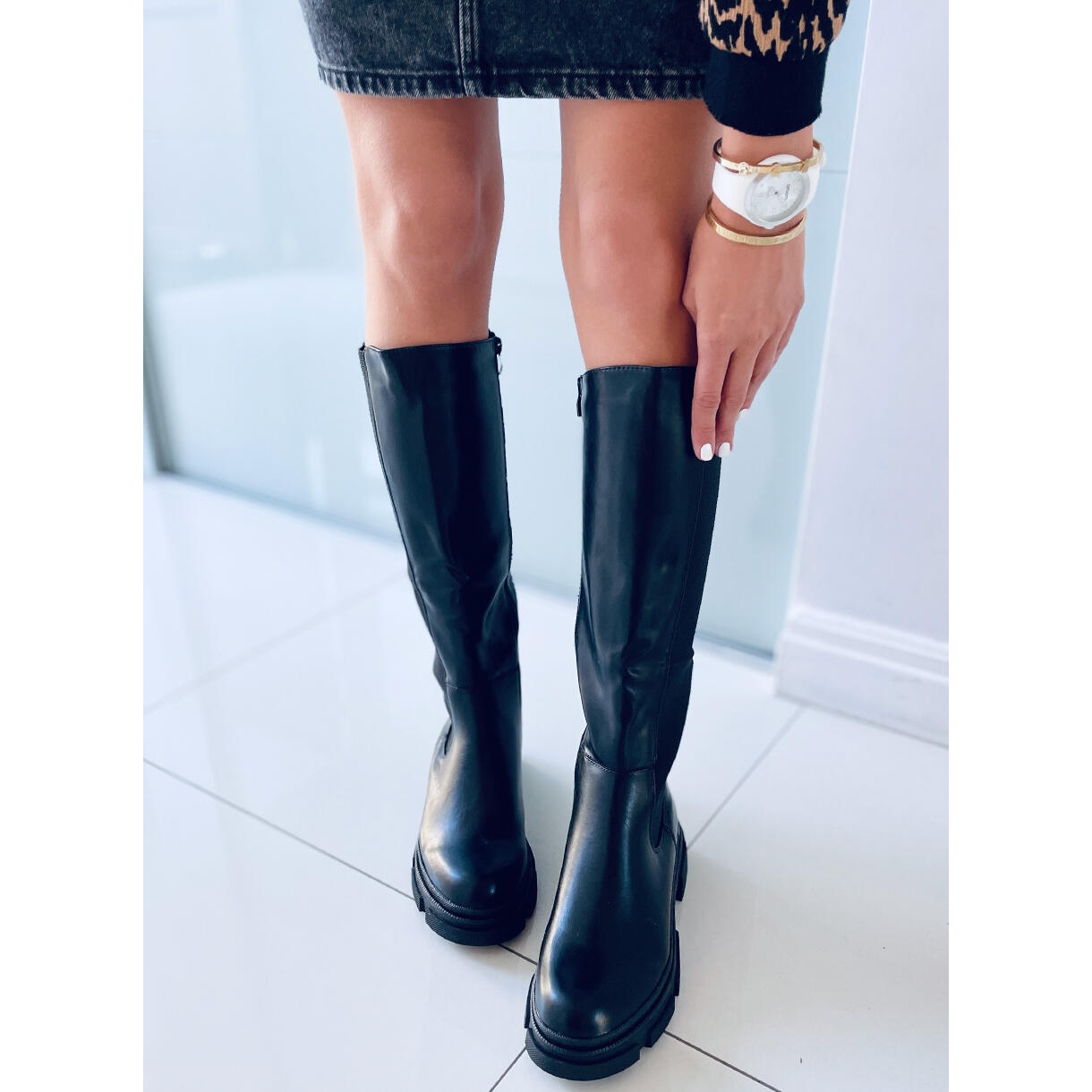 Bottes de femmes noires Skylar - Bottes noires sur une semelle épaisse qui combinent un personnage militaire avec un confort quotidien. La coupe minimaliste avec un insert flexible ressemble à des bottes de Jodhpur, et la fermeture à glissière pleine longueur sur la tige assure une mise en place rapide et confortable. Fabriqué en cuir écologique, l'intérieur est rembourré de fourrure douce - parfait pour les jours plus frais.