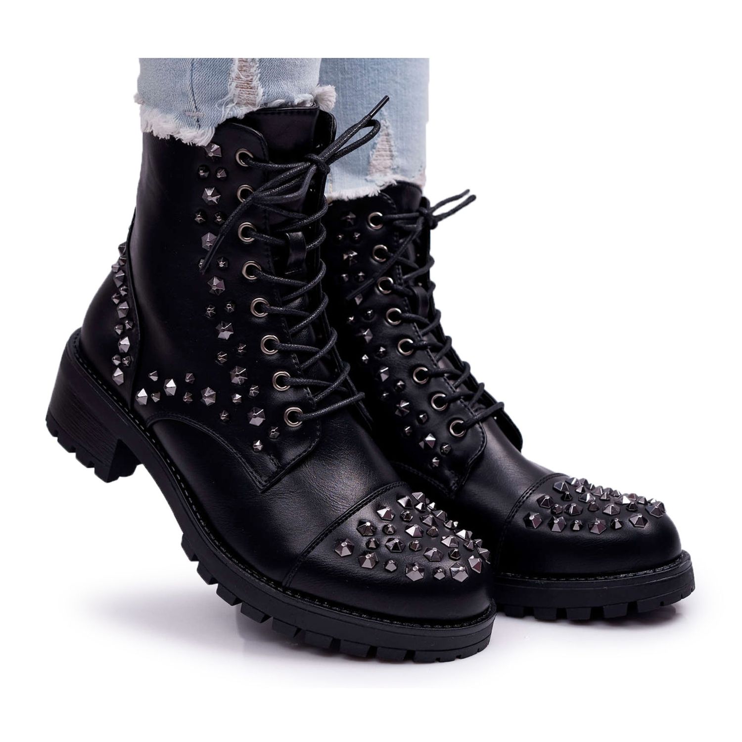 En plus de la fonctionnalité, les modèles SEA se distinguent par leur aspect stylé grâce à des strass et des clous qui leur confèrent une ambiance rock et audacieuse. Fabriquées en cuir écologique, dotées d'un talon plat de 5 cm de haut, les bottines assurent un confort de port toute la journée. Le bout rond les rend non seulement à la mode, mais aussi confortables.