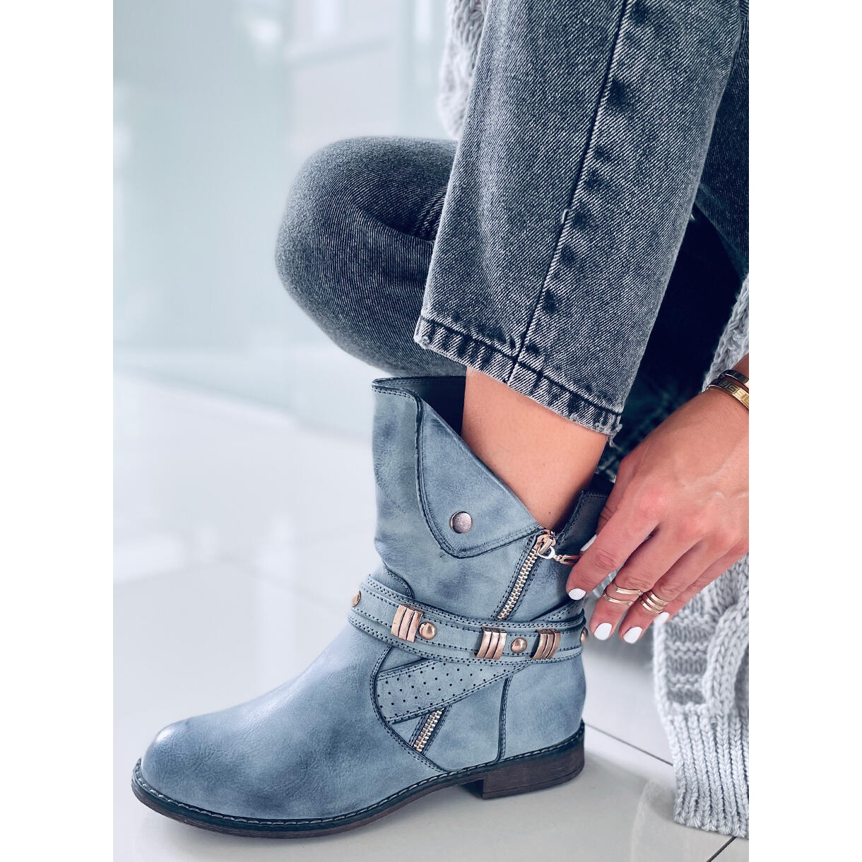 Les bottes ont un bout rond, un autre avantage qui souligne leur style à la fois décontracté et tendance. Le matériau synthétique utilisé dans la semelle garantit durabilité et stabilité, et la hauteur du talon de seulement 2,5 cm les rend parfaites pour les longues promenades.