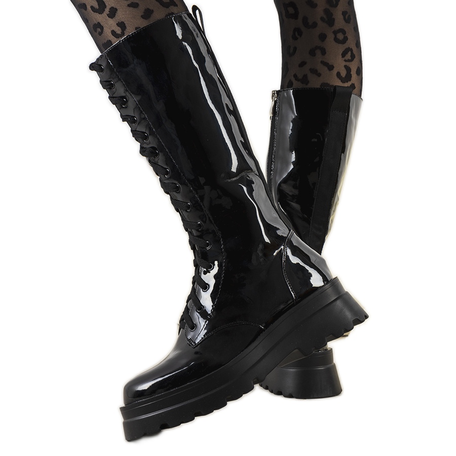 Bottes Fora en cuir verni noir