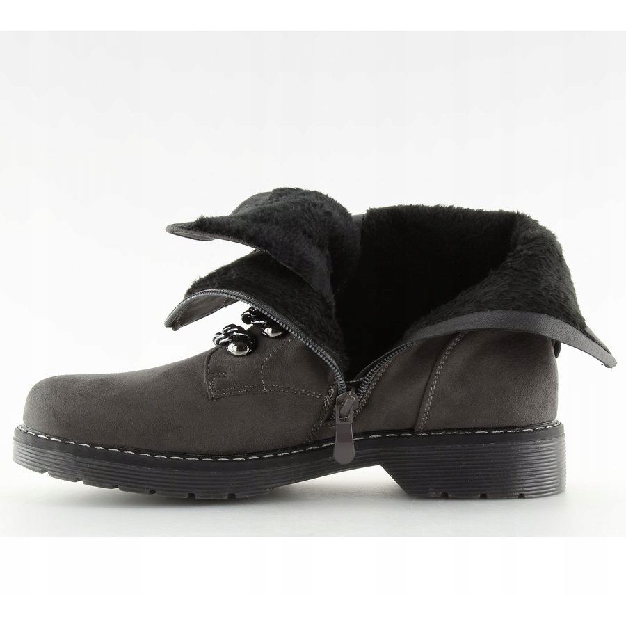 Découvrez un style unique avec des bottines workwear originales en gris 061-27-1 Grey ! Ces bottines pour femmes sont la combinaison parfaite entre design tendance et fonctionnalité. Au lieu d'un laçage classique, vous obtenez des chaînes décoratives uniques qui donnent aux chaussures un caractère rock, parfaitement adapté aux tendances du style urbain.