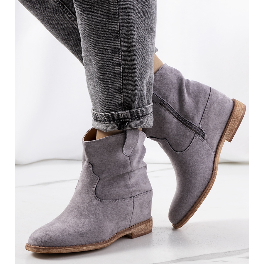 Détails: Bottes grises sur un talon compensé intérieur Hunjet
