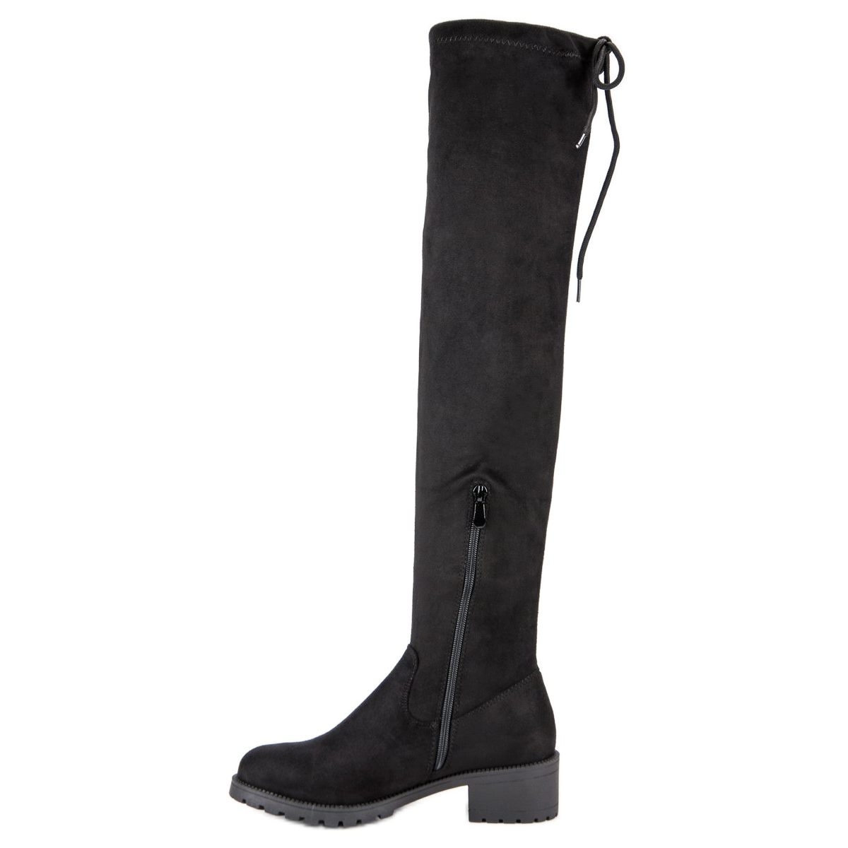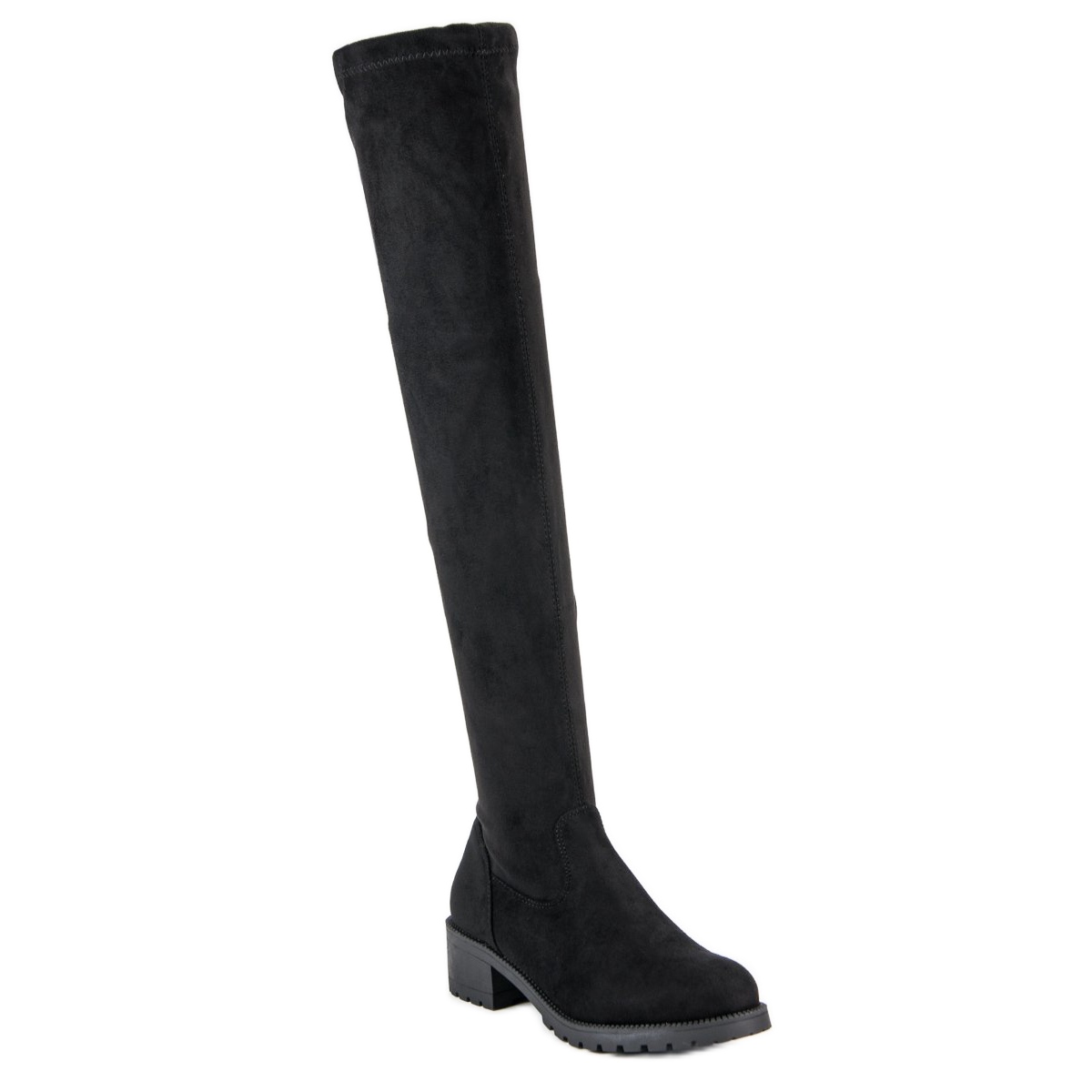 La tige haute au-dessus du genou leur confère un caractère extrêmement sophistiqué, s'adaptant parfaitement aussi bien aux styles du quotidien qu'aux tenues plus élégantes des sorties en soirée. Un confort supplémentaire est assuré par la semelle intérieure en cuir écologique, qui fait de chaque pas un plaisir.