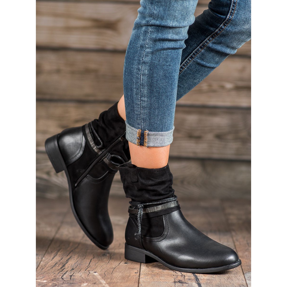 La largeur supérieure de 28 cm et la hauteur supérieure allant jusqu'à 16 cm permettent aux bottes de s'adapter parfaitement à chaque jambe. Le talon plat de 3 cm de haut assure le confort, et le bout rond ajoute un charme subtil. L'intérieur des chaussures est doublé de tissu, ce qui augmente le confort au porté.