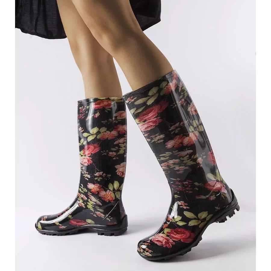 Bottes hautes noires avec roses Pimen - une combinaison d'élégance et de protection contre la pluie