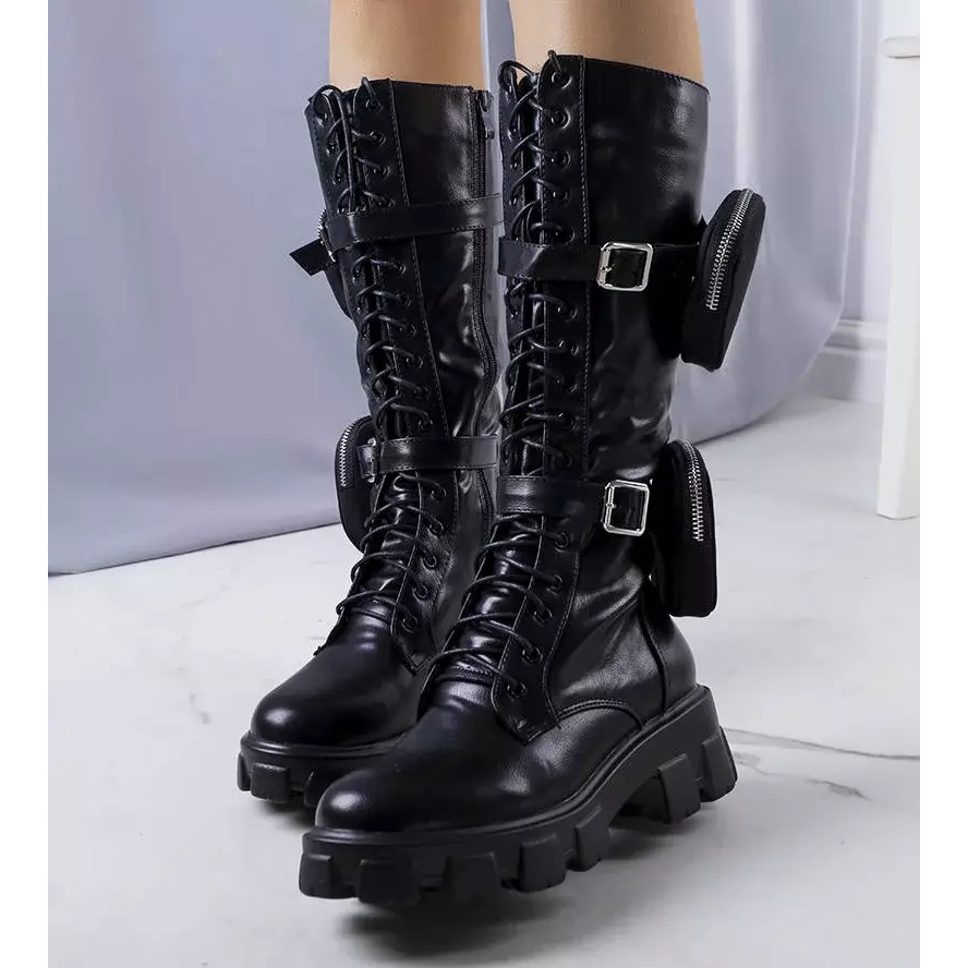 Bottes hautes noires avec une chaîne de Nererin