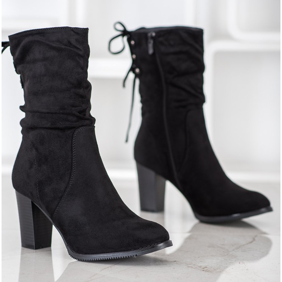 Les bottes ont une semelle synthétique avec bande de roulement, qui assure une bonne adhérence et un confort d'utilisation. Dotées d'un talon de 8 cm, ces bottines élégantes mettront en valeur votre silhouette tout en garantissant un confort au quotidien. Un nez rond et un nœud comme élément décoratif supplémentaire ajoutent subtilité et charme.