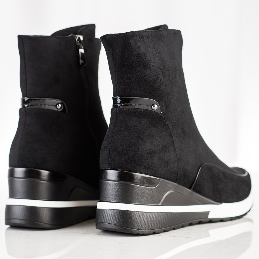 Découvrez l'élégance et le confort avec les bottines noires hautes VINCEZA, qui allient style décontracté et fonctionnalité au quotidien. Ces bottines pour femmes sont le choix parfait pour les journées froides de la saison automne/hiver. Fabriqués en cuir écologique de haute qualité en imitation daim, ils sont extrêmement élégants et en même temps respectueux de l'environnement.