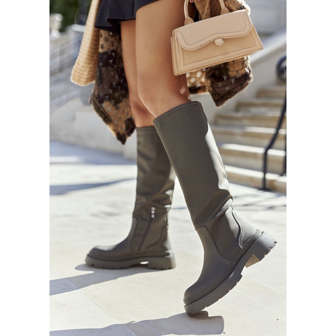 Des bottes classiques et intemporelles atteignant les genoux, en cuir écologique de haute qualité. Parfait pour l'automne et la saison d'hiver, ils combinent le style avec les fonctionnalités.