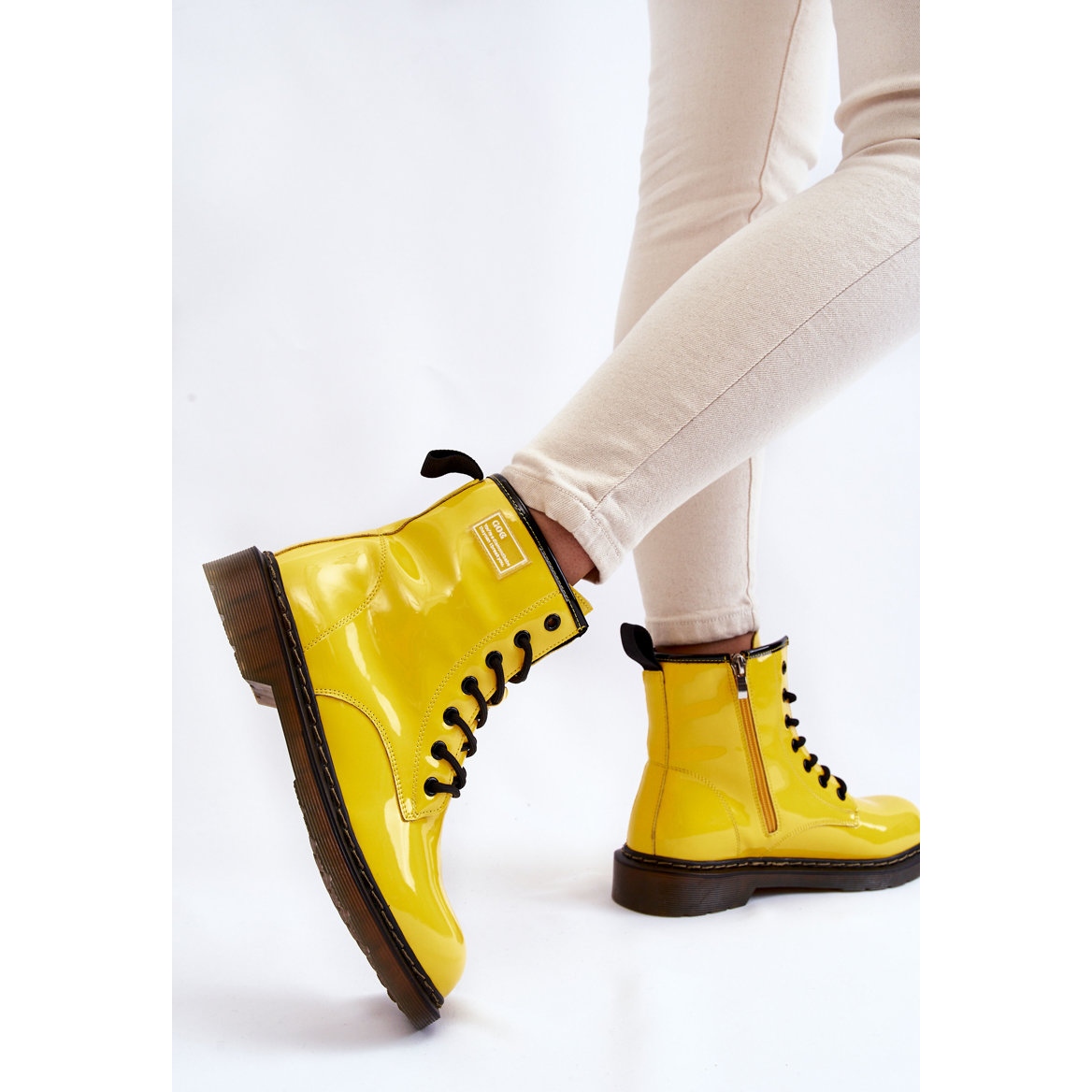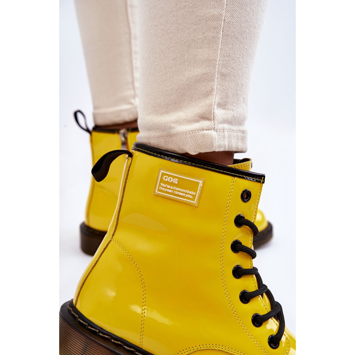 Chaudes, tendance et extrêmement confortables, voilà comment décrire brièvement les bottines en cuir verni pour femme GOE II2N4054 en jaune énergique. Ces chaussures élégantes sont une combinaison de tendances classiques et modernes qui attireront certainement l'attention des amateurs de mode originale.