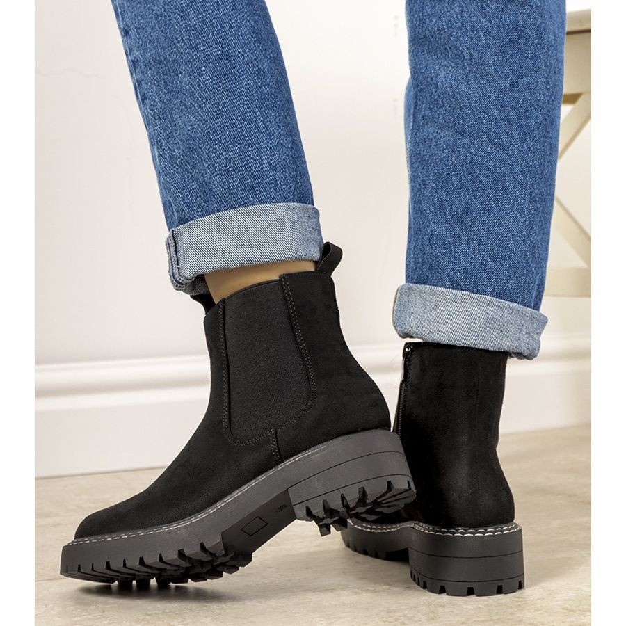 Les bottines isolées noires classiques Noam sont un choix idéal pour les femmes qui apprécient un style à la fois à la mode et classique. Fabriquées en cuir suédé écologique, ces bottines allient élégance et respect de l'environnement. L'insert élastique rend l'enfilage et le retrait des chaussures extrêmement confortables, et les coutures blanches sur la semelle leur donnent un look distinctif et élégant.