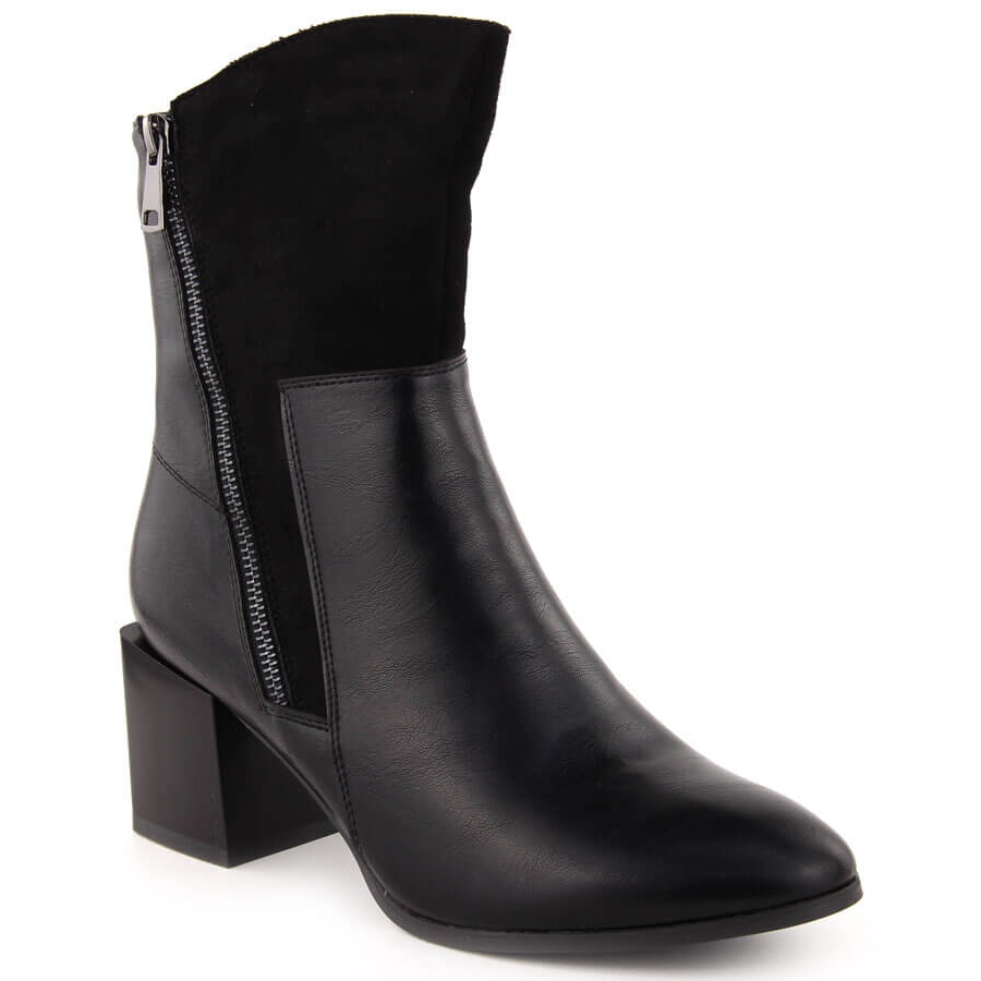 Les bottes ont un nez rond, ce qui augmente encore le confort du port. La tige avec une hauteur d'environ 15,5 cm et un talon femelle sous la forme d'un bloc d'une hauteur de 6,5 cm permettent un mouvement stable, à la fois dans des combinaisons occasionnelles et plus formelles. La fixation de zip assure la facilité de mise en place et de décoller, et l'insert en tissu en combinaison avec la fourrure à l'intérieur augmente le confort de l'utilisation.