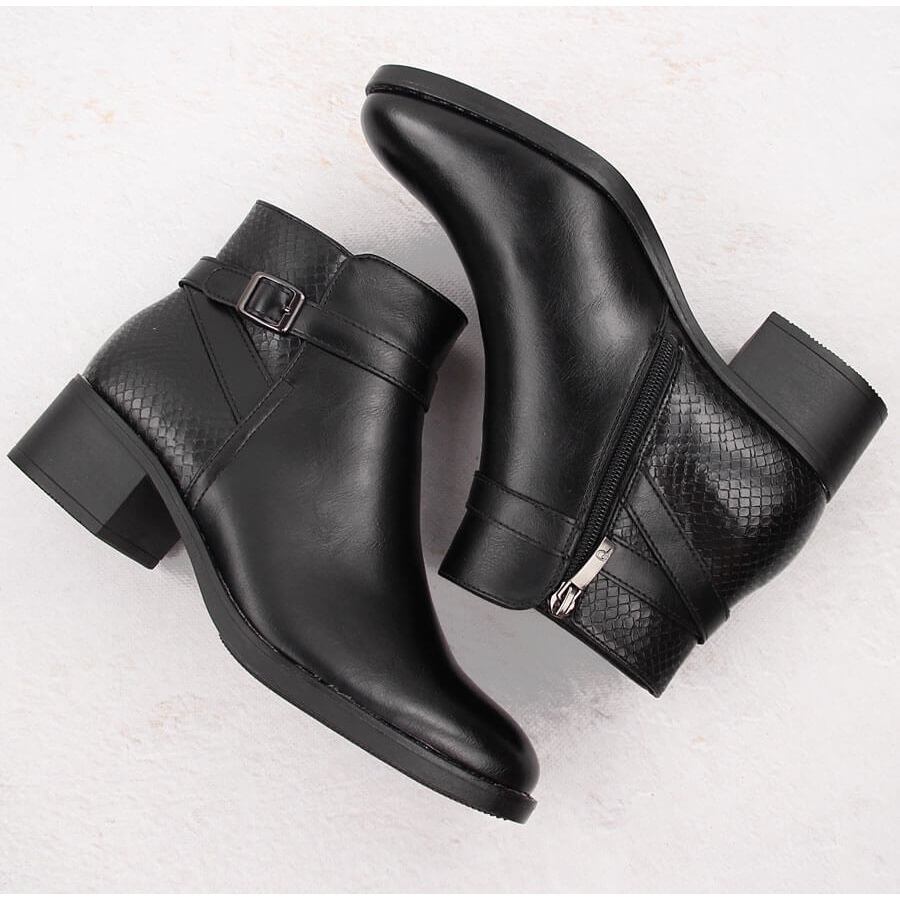 Les bottes ont une forme compacte et élégante, atteignant la cheville, ce qui les rend parfaitement correspondant à différents styles - du décontracté à plus formel. L'orteil rond et le talon de 4,5 cm dans le bloc coupé est une combinaison qui vous permet de vous déplacer confortablement tout au long de la journée. De plus, le château sur le côté facilite la mise en place et la suppression des chaussures.