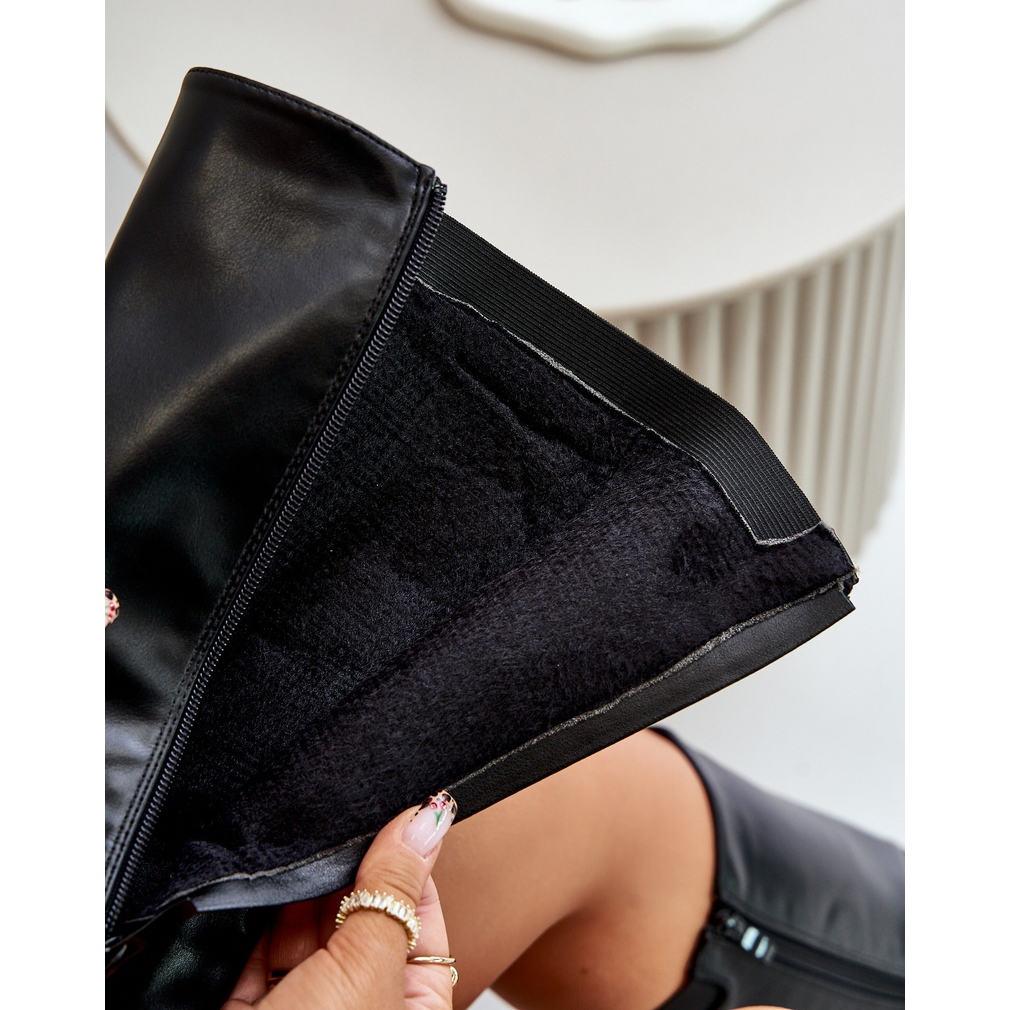 Détails: Bottes isolées à talons plats pour femmes avec boucle dorée, noir Arsisna le noir